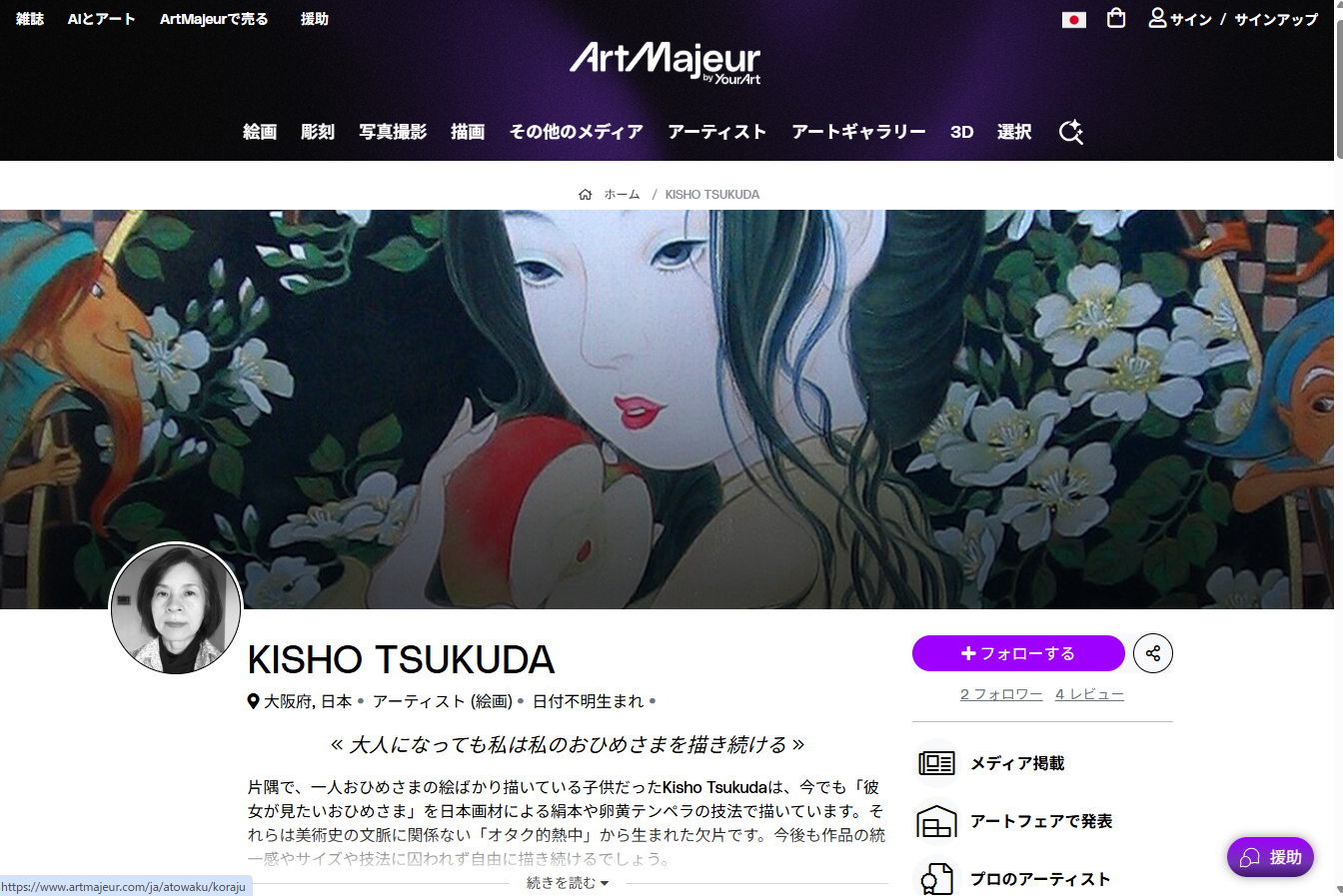 「ArtMajeur-アートマジュール」は、フランス発の世界中に130,000人を超えるアーティストと700を超えるアートギャラリーからなるコミュニティを持つ、最大規模のオンラインアートギャラリーおよびマーケットプレイスの一つとの事